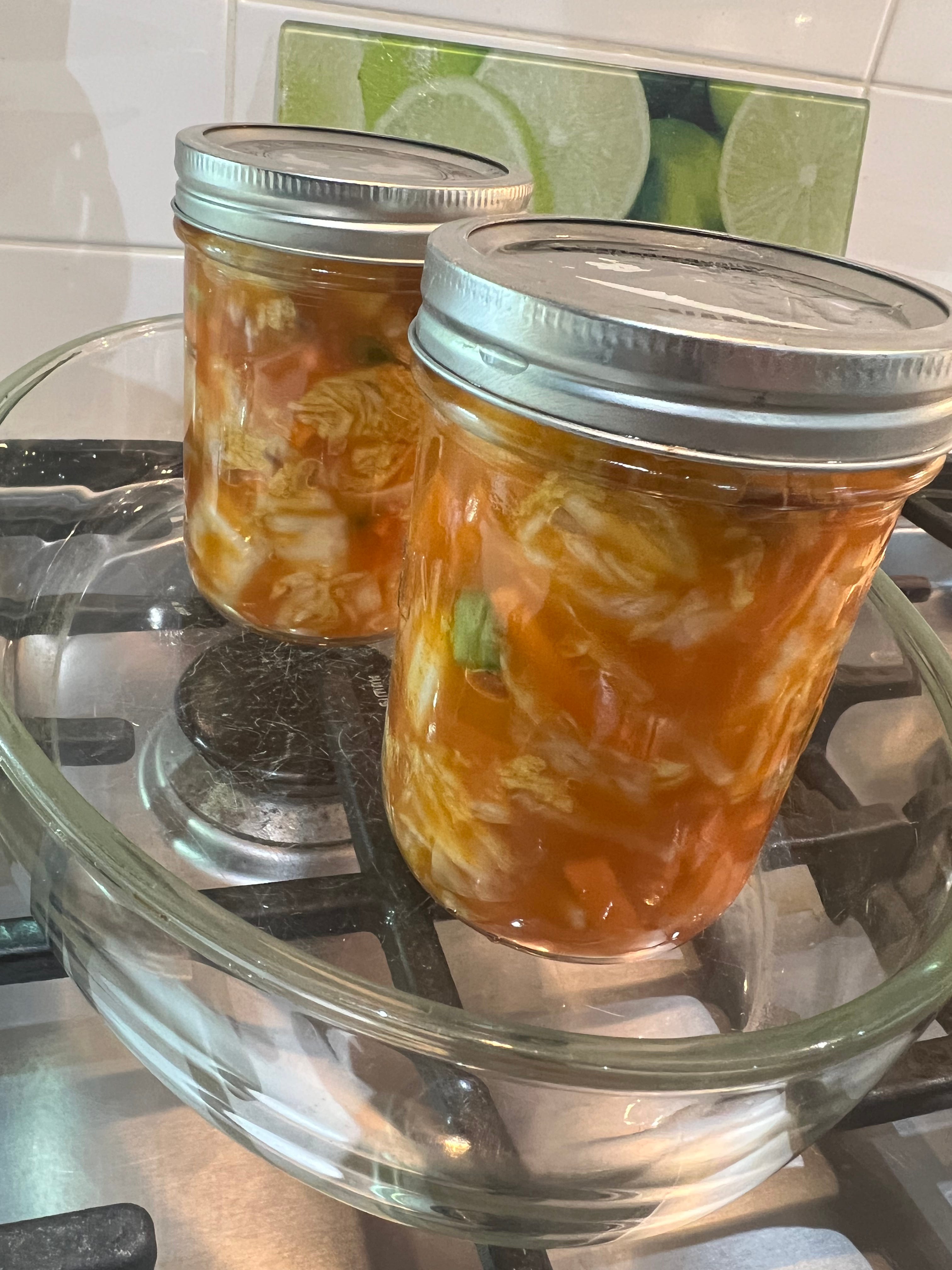 Here is a picture of the kimchi in the jars. I’ll let you know how it is!